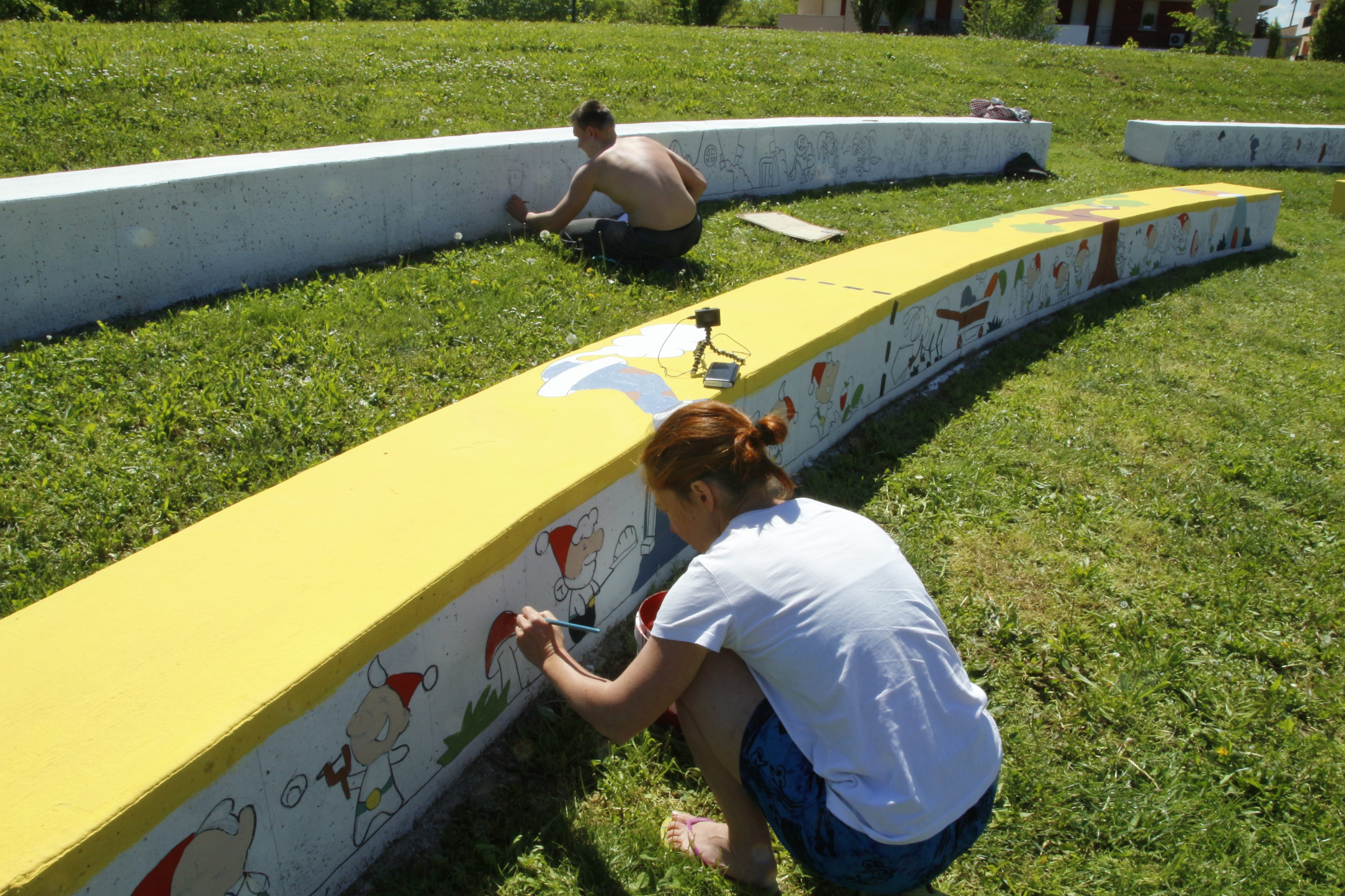 Una nuova azione del progetto InterAzioni prevede la realizzazione di alcuni disegni presso il parco di via San Bellino ad Albignasego, un modo per ripensare in maniera colorata e fantasiosa lo spazio pubblico. Le illustrazioni, ispirate da alcune idee dei bambini del territorio, ritraggono 6 mondi diversi, abitati da gnomi, elfi, draghi e personaggi del circo e sono state realizzate dall’ Illustratore russo Roman Shchetkin. La colorazione è a cura di Teatro Invisibile, coadiuvato da un’ equipe internazionale di artisti tra i quali Olesia Antiushenia, Bruno Morera, Claun Crispy, Gian Zeni, Serena Cercignano, Davide e Olivera di Murales senza Frontiere,..nonchè abitanti della zona e bambini! Saremo all’opera nei prossimi giorni, e vi aspettiamo per contribuire a portare colore e bellezza ad Albignasego!